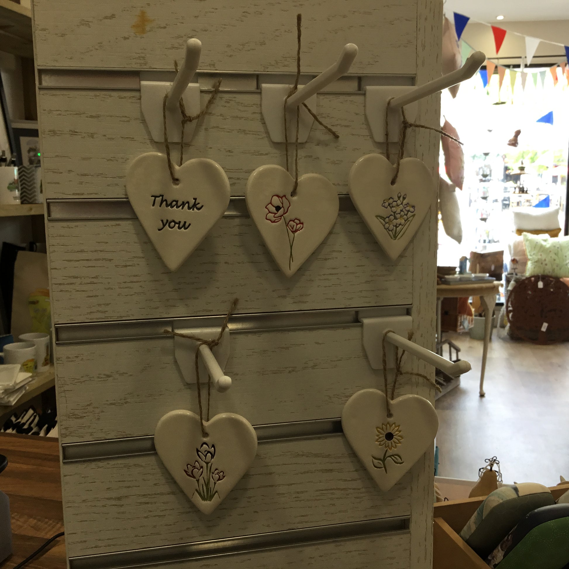 Ceramic hearts with flowers. Ceramic heart thank you.