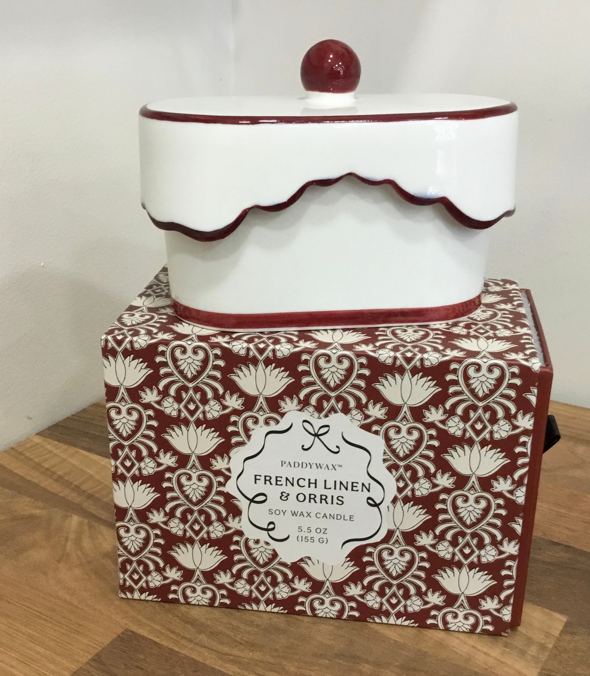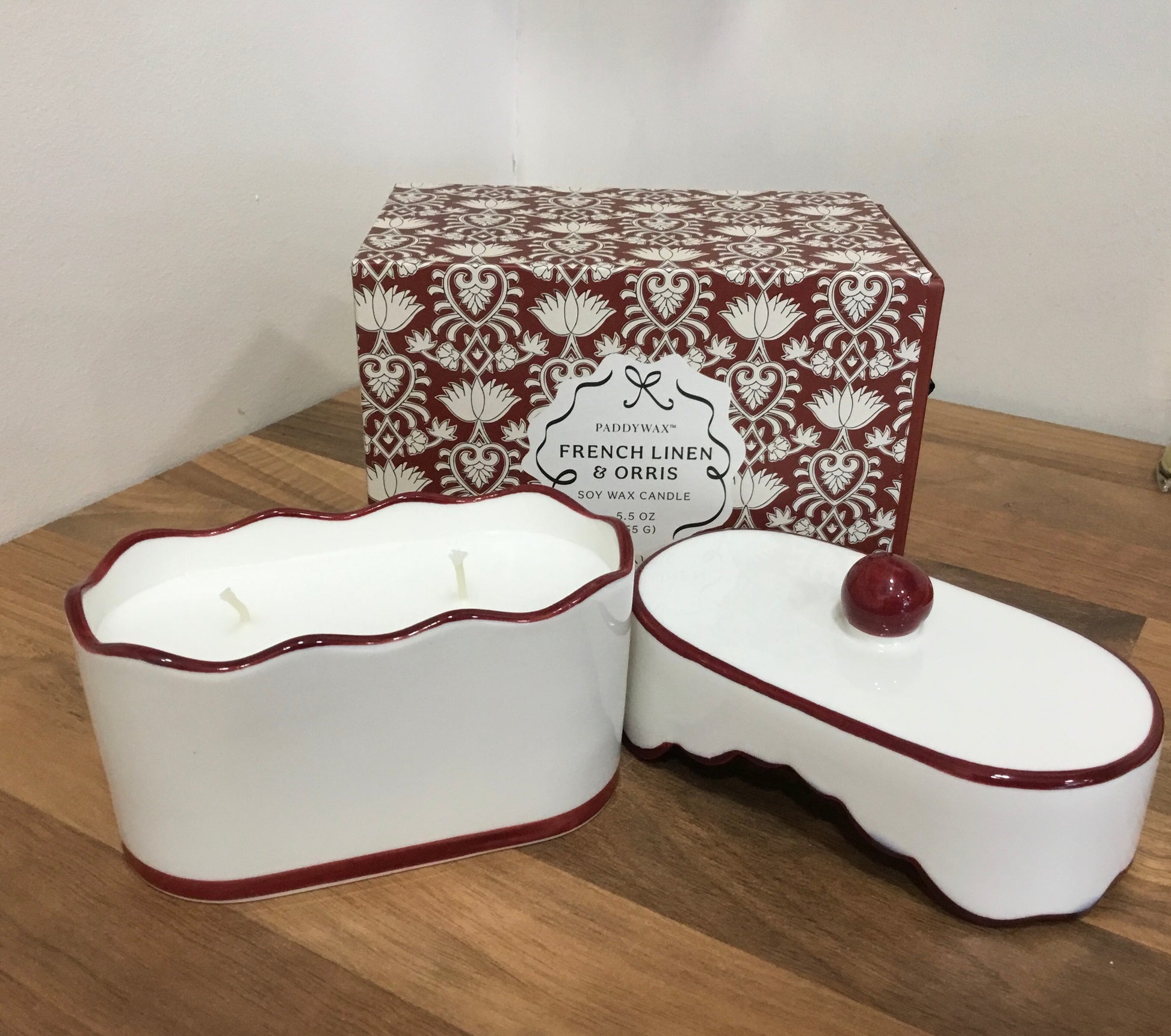 French Linen and Orris Candle in a ceramic dish