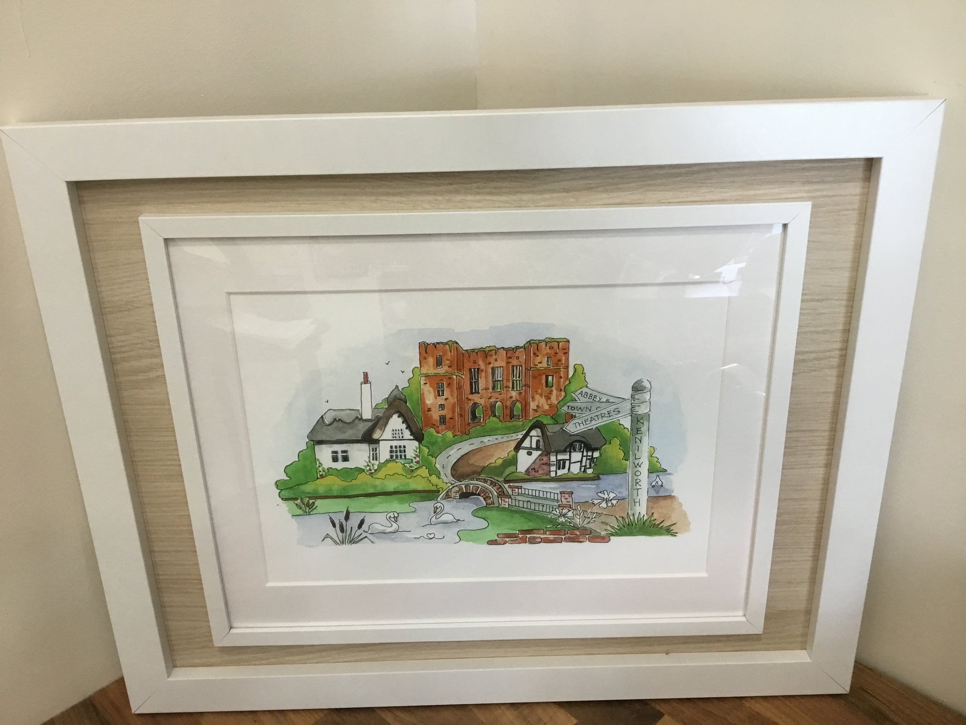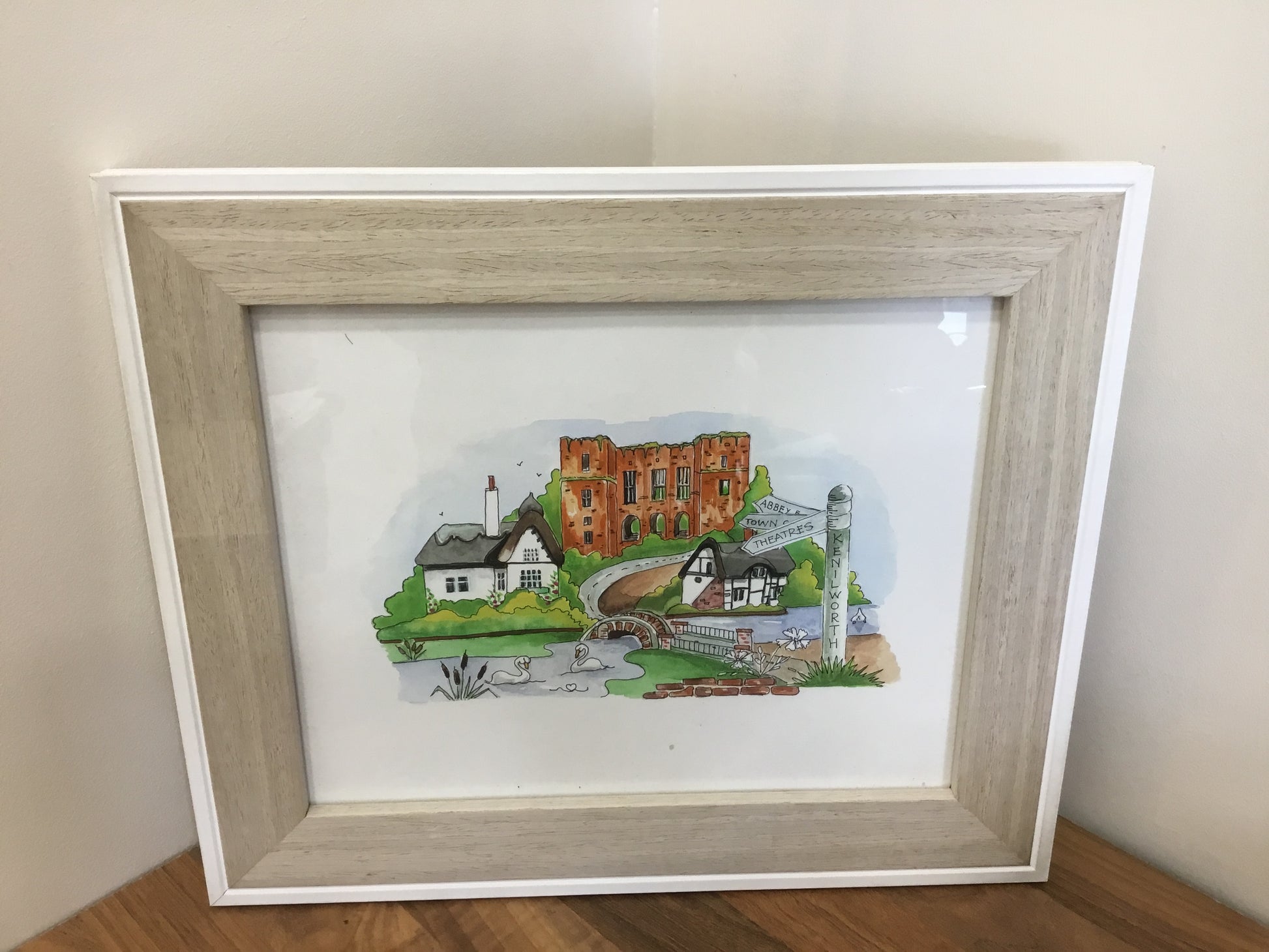 Artwork in wooden frame by Kenilworth artist Diane Shore.