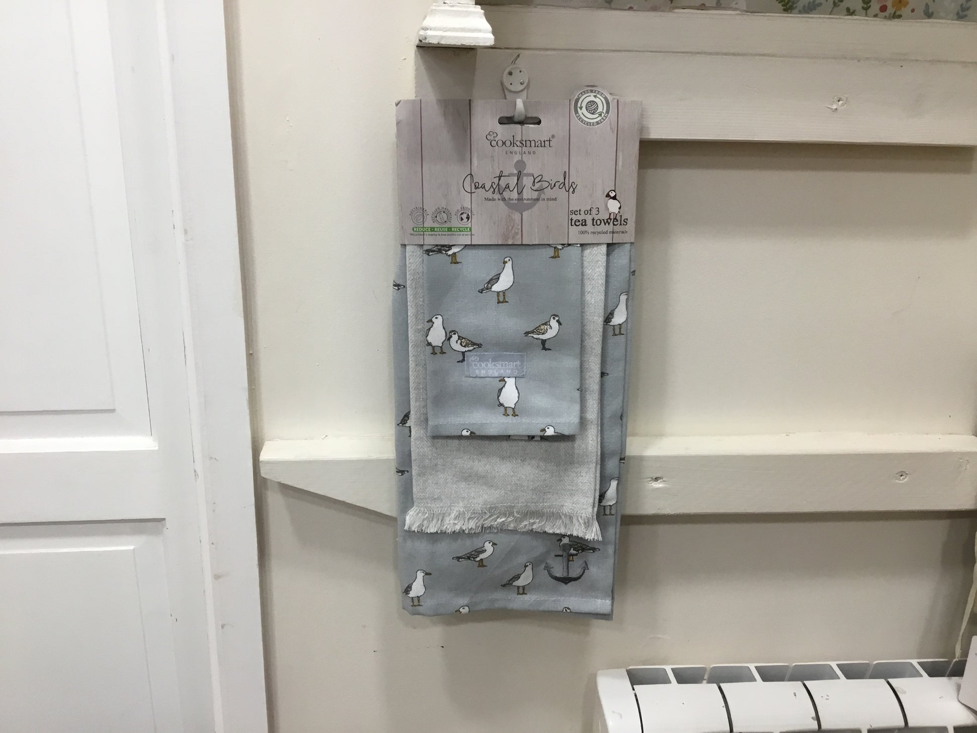Pack of 3 coastal bird design tea towels.