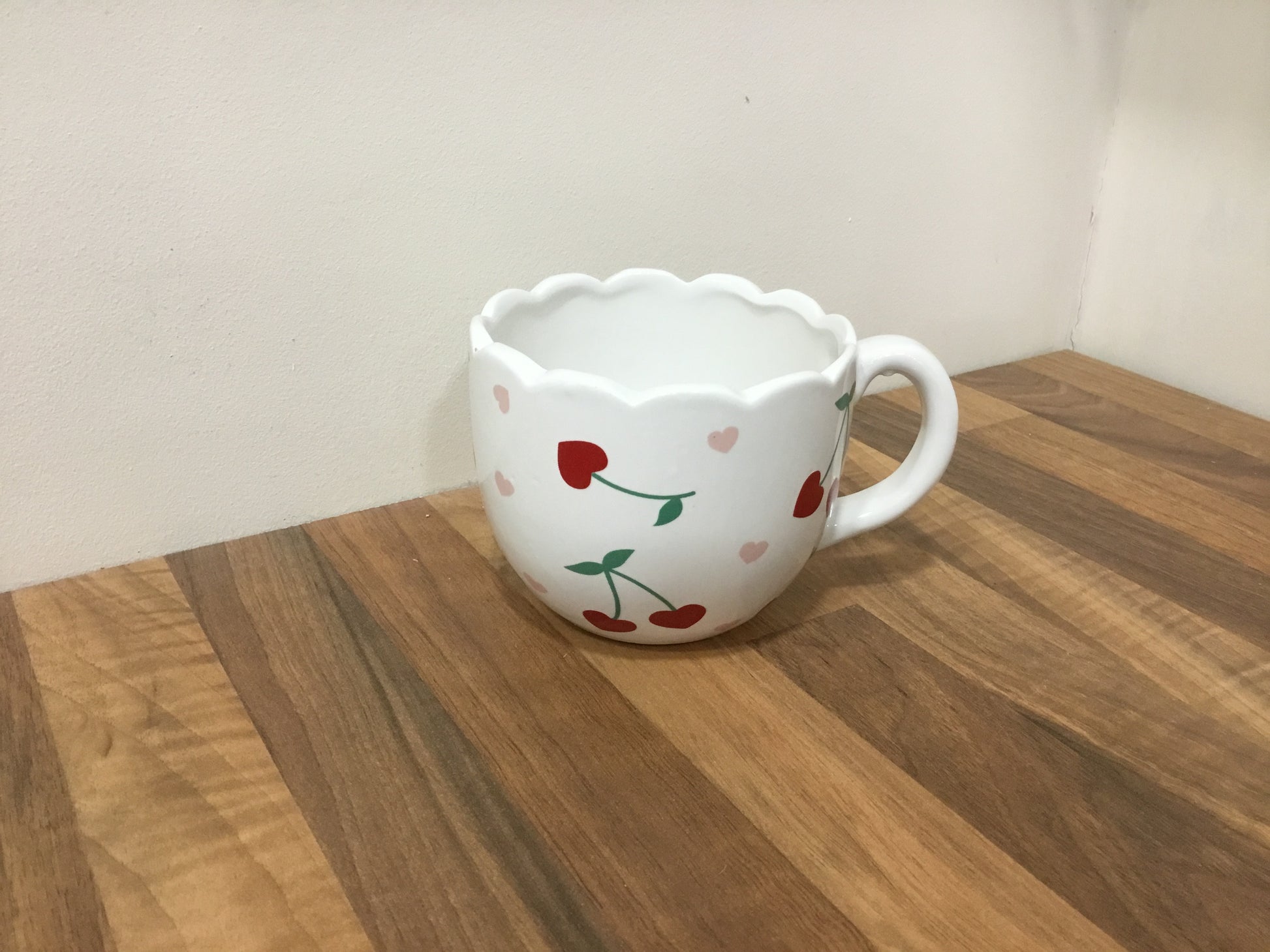 Scalloped edged cherry heart mug