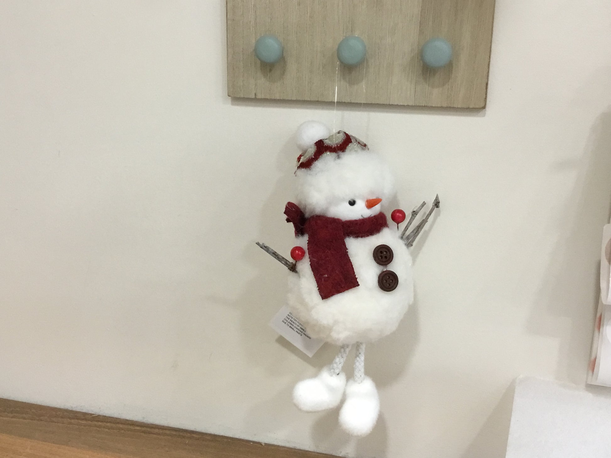 Christmas furry snowman hanger with card and hat.