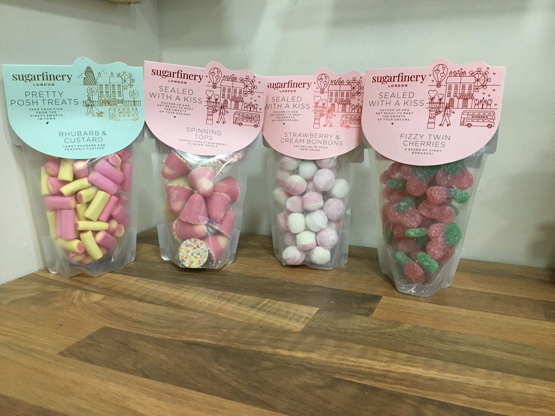 Sweets. Fizzy cherries. Rhubarb & Custard. Bonbons. Spinning tops.