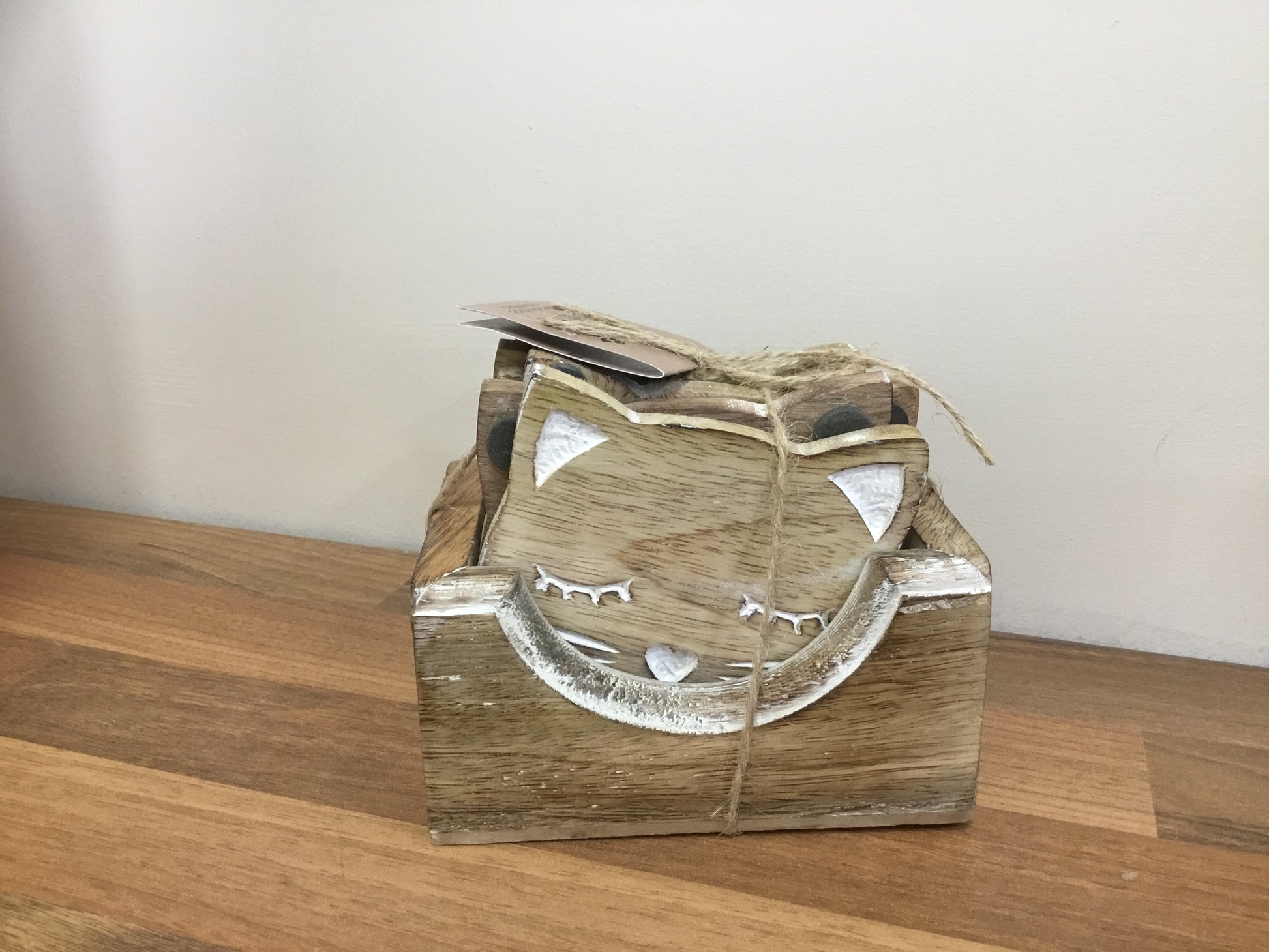 Wooden cat coasters